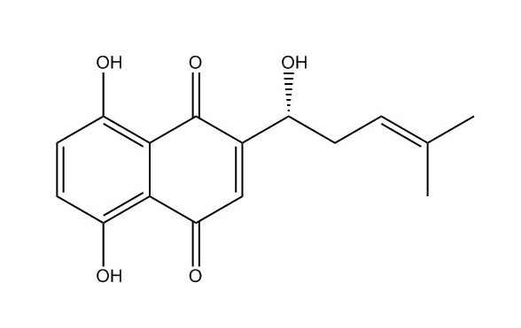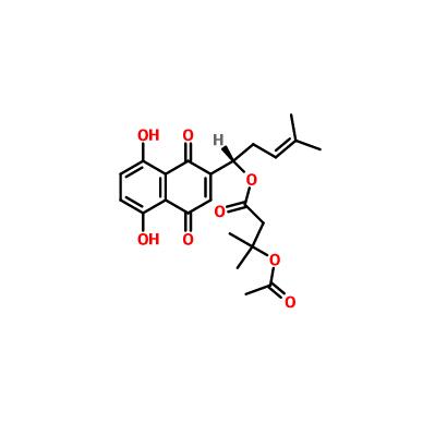 β,β-二甲基丙烯酰紫草素|24502-79-2[1]. Jiang Y et al. Shikonin Inhibits Intestinal Calcium-Activated Chloride Channels and Prevents Rotaviral Diarrhea. Front Pharmacol. 2016 Aug 23;7:270.